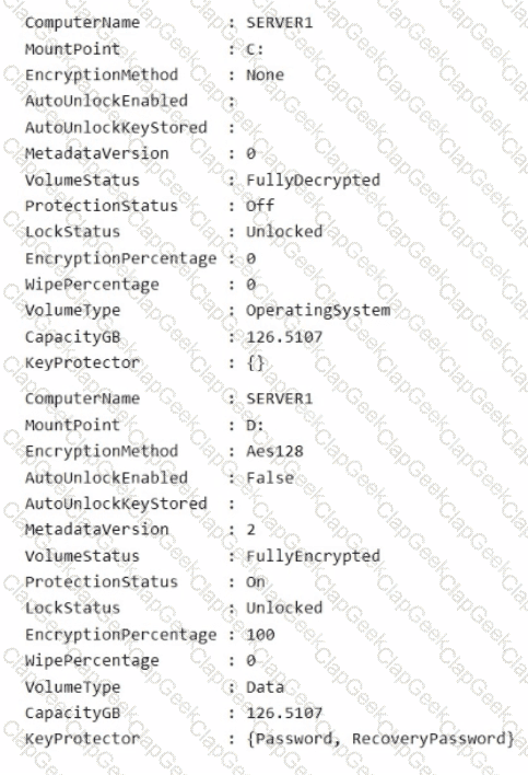 You have a server named Server1 that runs Windows Server and contains two volumes named C and D.