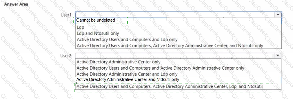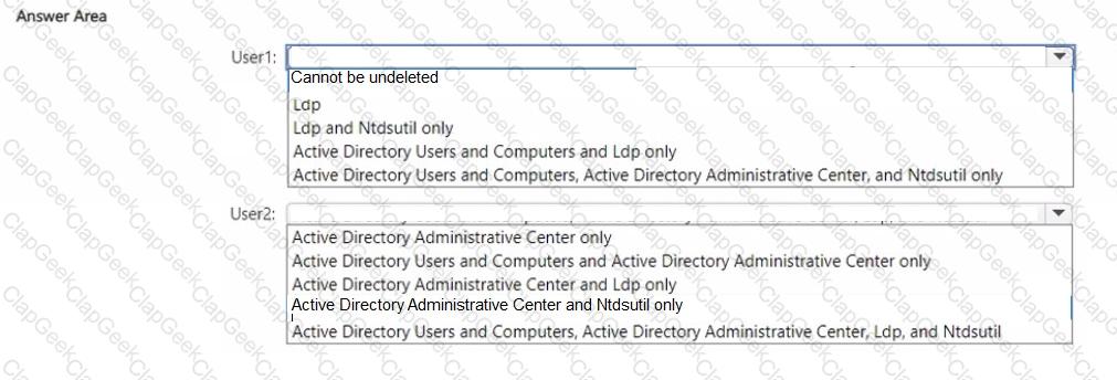 What can you use to undelete each user? To answer, select the appropriate options in the answer area.