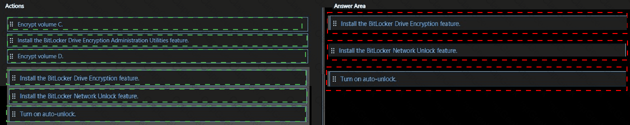 In which order should you perform the actions? To answer, move all actions from the list of actions to the answer area and arrange them in the correct order.