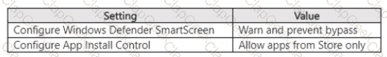 You have a Group Policy Object (GPO) that is linked to OUT and has the Windows Defender SmartScreen settings shown in the following table.