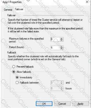 You have a failover cluster named Cluster1 that contains three Windows Server nodes named Node 1, Node2. and Node3.