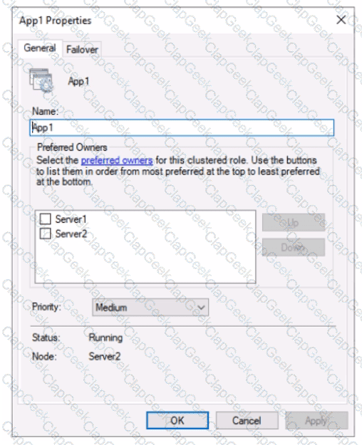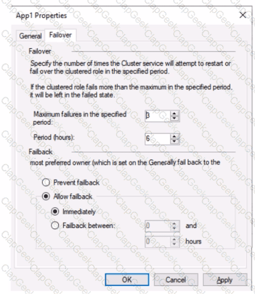 The Failover tab in App1 Properties is shown in the Failover exhibit. (Click the Failover tab.)