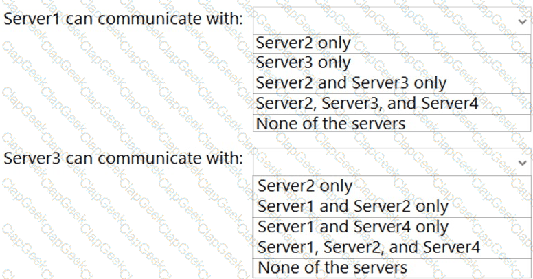 With which servers can Server1 and Server3 communicate? To answer, select the appropriate options in the answer area.