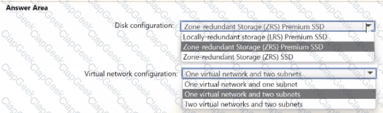 You need to configure the disks on VM1 and the virtual network. The solution must meet the following requirements: