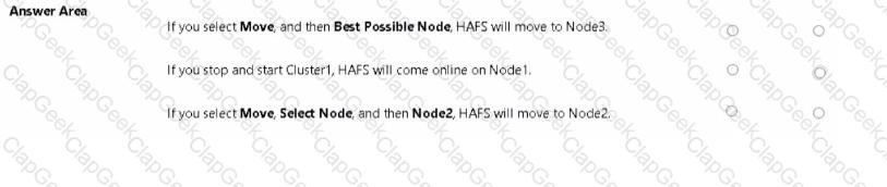 You have a failover cluster named Cluster1 that contains the nodes shown in the following table.