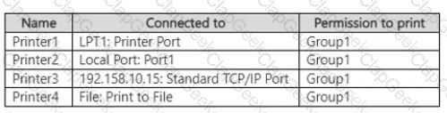 Server1 contains the printers shown in the following table.