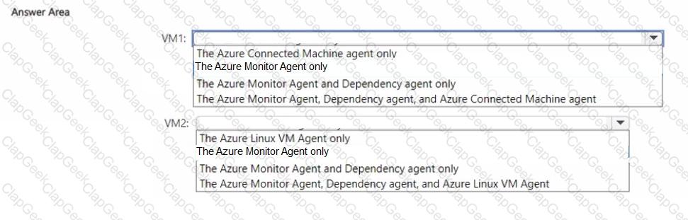 You have an Azure subscription that contains two virtual machines named VM1 and VM2. VM1 runs Windows Server. VM2 runs Ubuntu Linux. You need to monitor VM1 and VM2 by using VM insights. The solution must meet the following requirements: