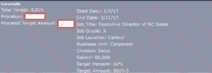 A customer's variable pay program dates are January 1 to December 31, 2017. Given the screenshot below, what are the approximate Proration and Prorated Target Amount for this assignment?
