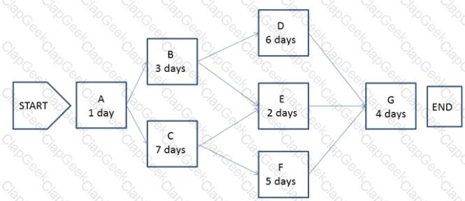 The following chart contains information about the tasks in a project.