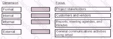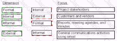 Match each dimension of the communications management plan to its corresponding focus.