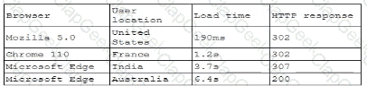 A company receives several complaints from customers regarding its website. An engineer implements a parser for the web server logs that generates the following output: