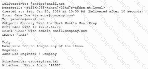 Protected company data was recently exfiltrated. The SOC did not find any indication of a network or outside physical intrusion, and the DLP systems reported no unusual activity. The incident response team determined a text file was encrypted and reviews the following log excerpt: