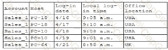 A security analyst is troubleshooting the reason a specific user is having difficulty accessing company resources The analyst reviews the following information: