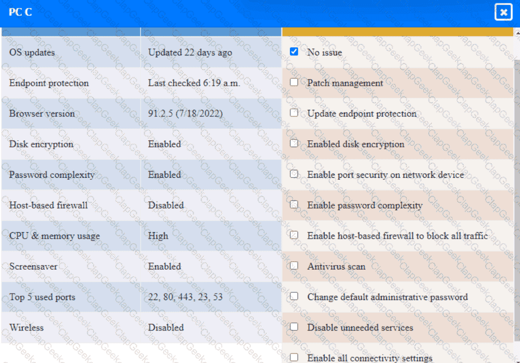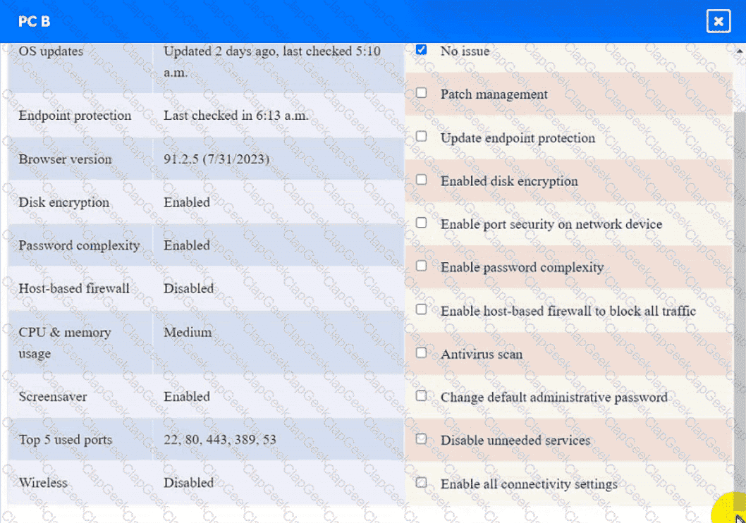 Click on the various workstations and network devices to review the posture assessment results. Remediate any possible issues or indicate that no issue is found.