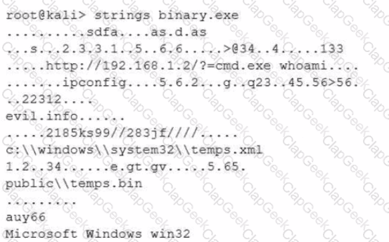 After a cybersecurity incident, a security analyst was able to collect a binary that the attacker used on the compromised server. Then the analyst ran the following command: