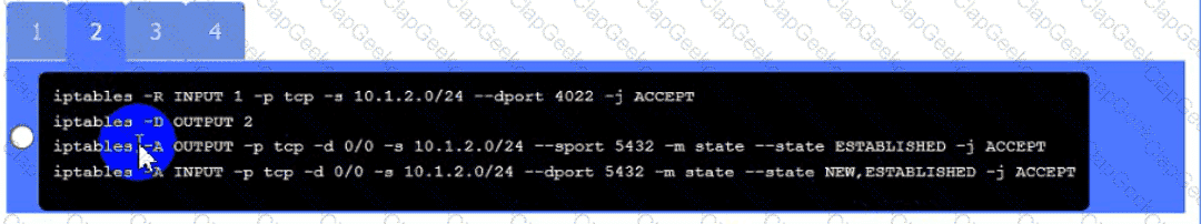 • The PostgreSQL server must only allow connectivity in the 10.1.2.0/24