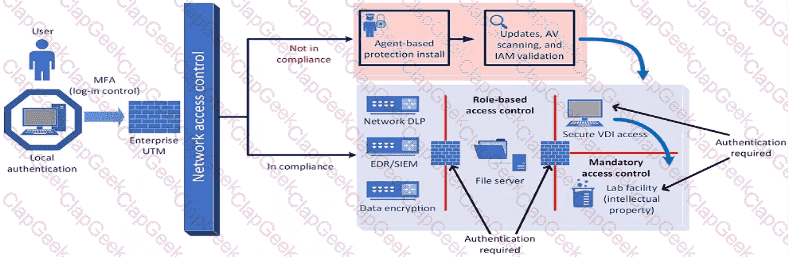 A company plans to implement a research facility with Intellectual property data that should be protected The following is the security diagram proposed by the security architect