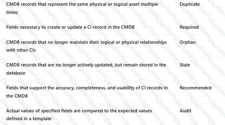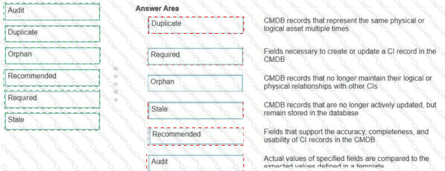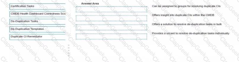 ACMDB Administrator seeks to understand the available tools for preventing addressing, and remediating duplicate CIs Drag and drop each feature with the corresponding outcome Some options may not apply.