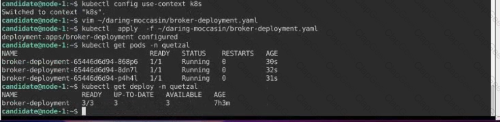 Modify the existing Deployment named broker-deployment running in namespace quetzal so that its containers.