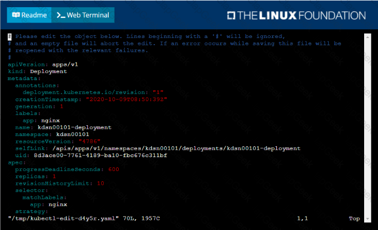 Start with the deployment named kdsn00101-deployment which has already been deployed to the namespace kdsn00101 . Edit it to: