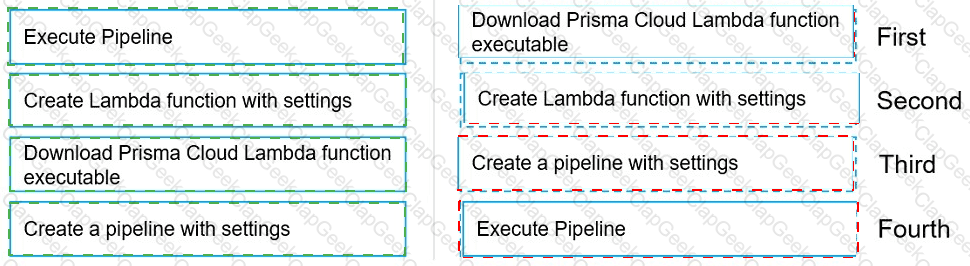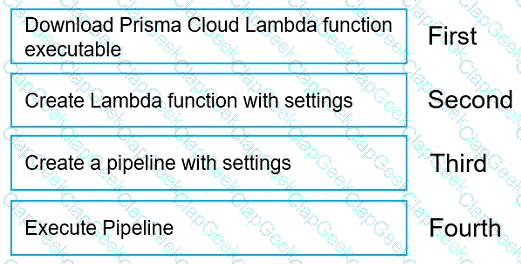 Move the steps to the correct order to set up and execute a serverless scan using AWS DevOps.