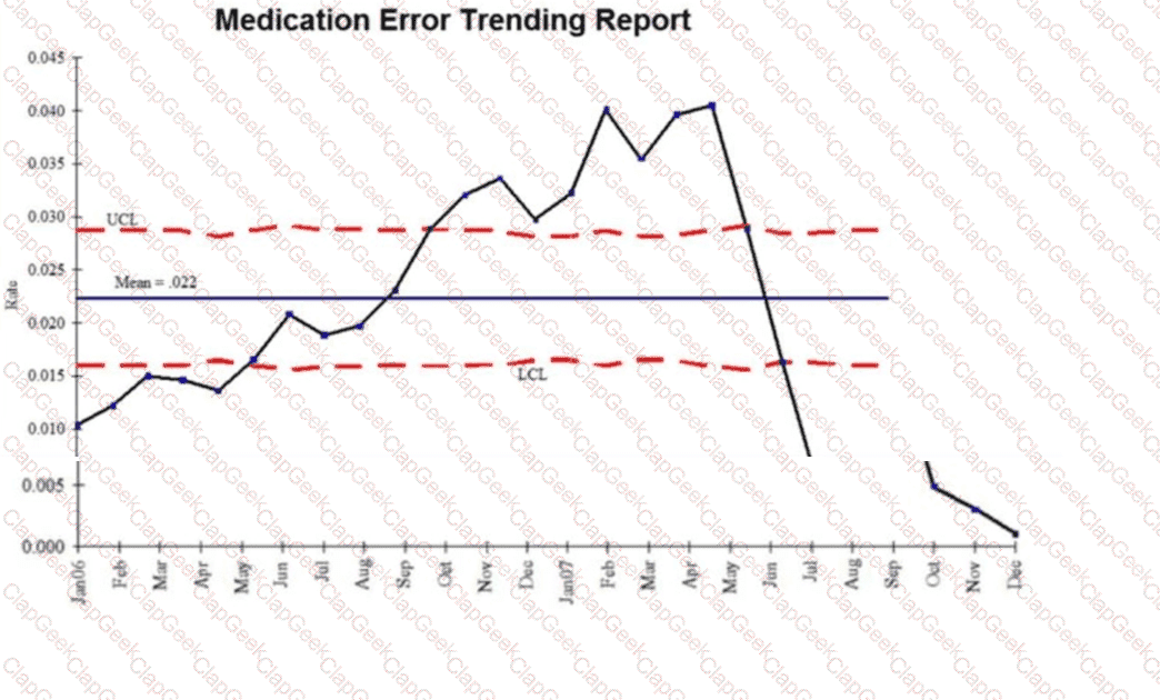 A Pharmacy and Therapeutics Committee has reviewed the following control chart for presentation to a governing body: