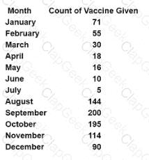 A healthcare quality professional is provided the following data:
