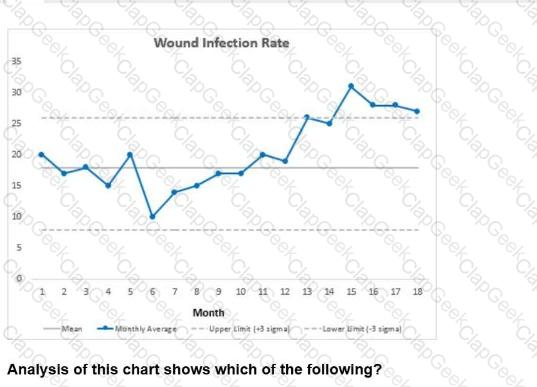 Analysis of this wound infection rate control chart shows which of the following?