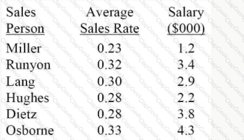 The following table shows the sales rates and respective salaries for members of a team.