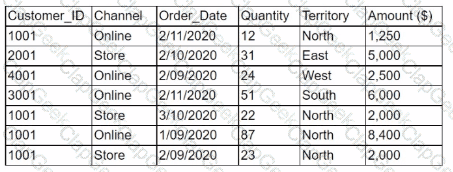 If a query is made to the table with the following logic: