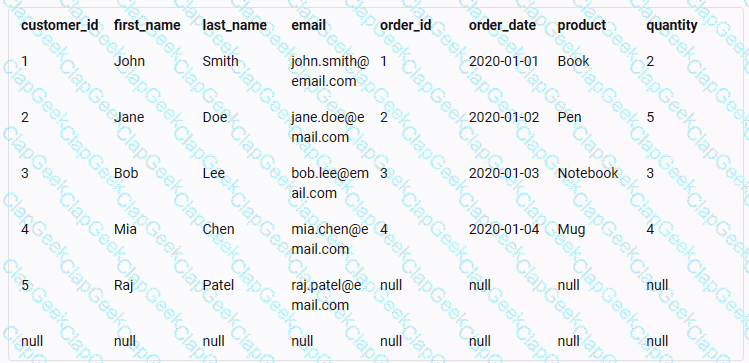 A data analyst needs to perform a full outer join of a customer's orders using the tables below: