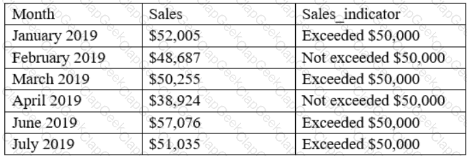 An analyst has generated a report that includes the number of months in the first two quarters of 2019 when sales exceeded $50,000: