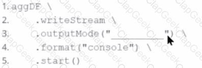 In the code block below, aggDF contains aggregations on a streaming DataFrame: