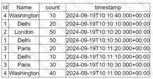 (Referring to the table image: it has columns Id, Name, count, and timestamp.)