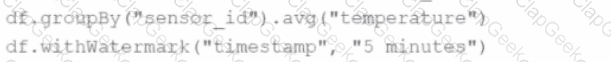 A data engineer wants to process a streaming DataFrame that receives sensor readings every second with columns sensor_id, temperature, and timestamp. The engineer needs to calculate the average temperature for each sensor over the last 5 minutes while the data is streaming.