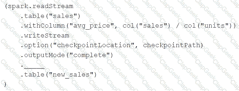 A data engineer has configured a Structured Streaming job to read from a table, manipulate the data, and then perform a streaming write into a new table.