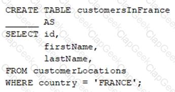 A data engineer wants to create a new table containing the names of customers that live in France.