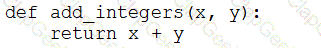 A data engineer that is new to using Python needs to create a Python function to add two integers together and return the sum?