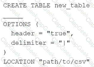 A data engineer needs to create a table in Databricks using data from a CSV file at location /path/to/csv.
