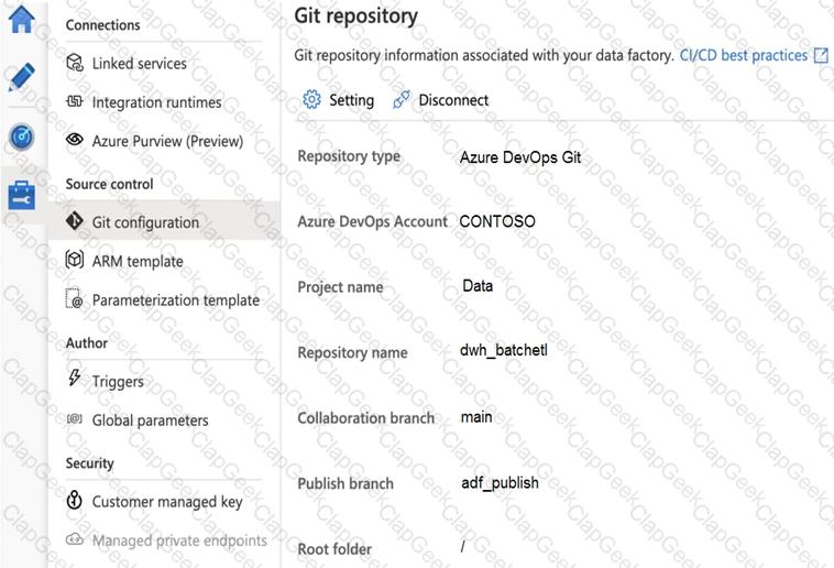 You configure version control for an Azure Data Factory instance as shown in the following exhibit.