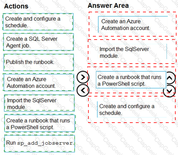 Which four actions should you perform in sequence? To answer, move the appropriate actions from the list of actions to the answer area and arrange them in the correct order.