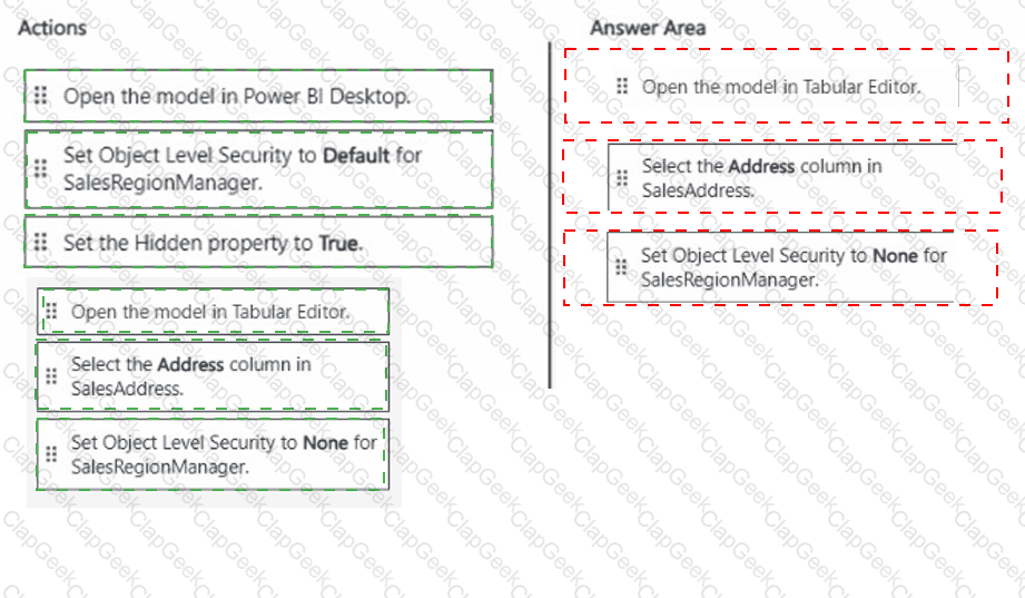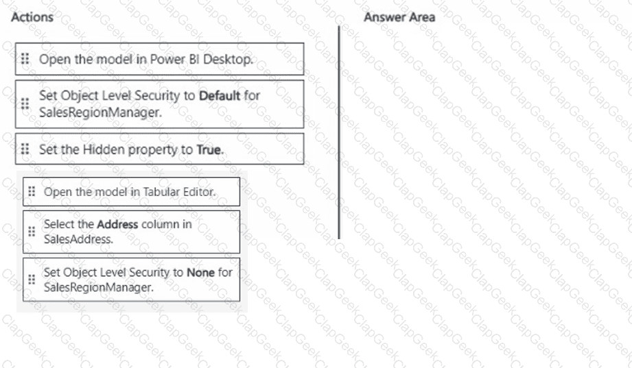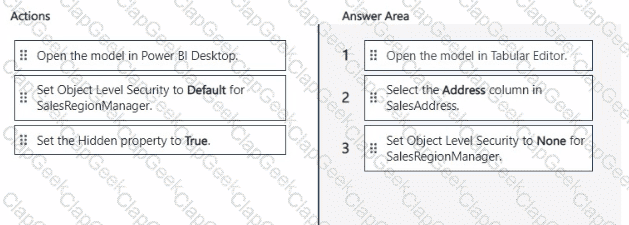 You need to modify the model to ensure that users assigned the SalesRegionManager role cannot see a column named Address in Sales Address.
