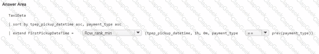 You have a Fabric eventhouse that contains a KQL database. The database contains a table named TaxiData that stores the following data.
