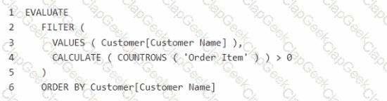 How should you complete the DAX code? To answer, select the appropriate options in the answer area.