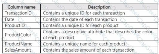 You have a Fabric warehouse that contains a table named Staging.Sales. Staging.Sales contains the following columns.