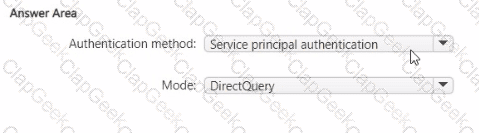 Which data source authentication method and mode should you use? To answer, select the appropriate options in the answer area.