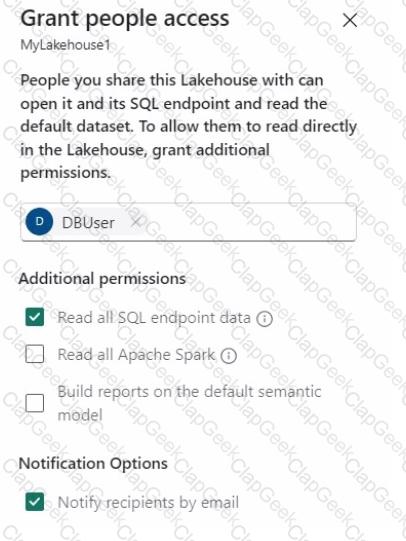 You grant DBUser access to Lakehouse1 as shown in the following exhibit.