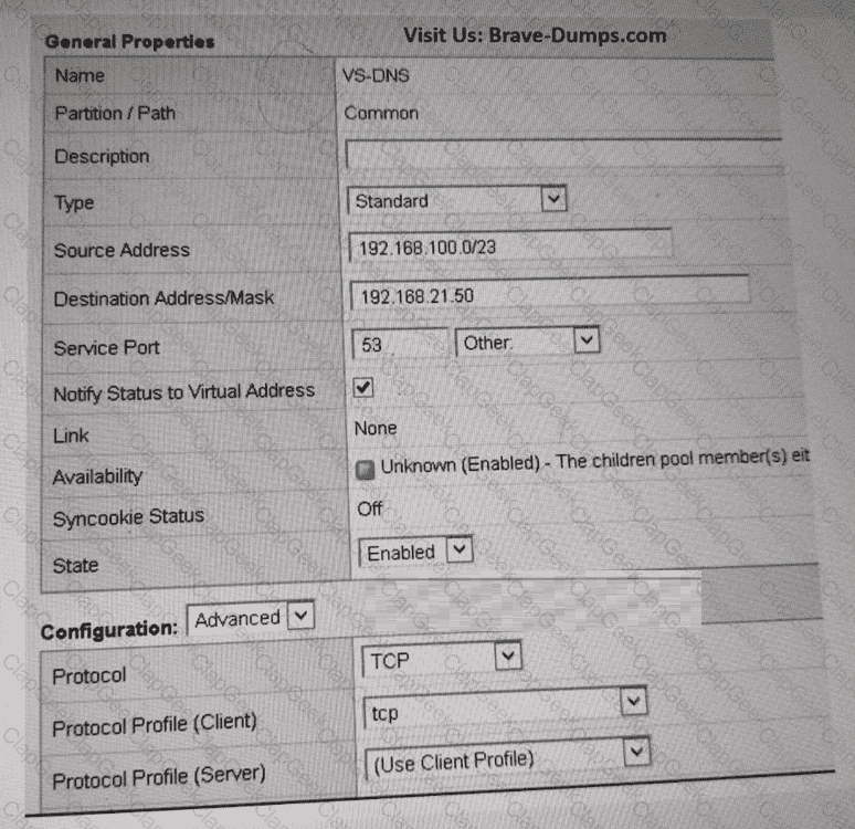 Which property change should the BIG-IP Administrator make in the Virtual Server to resolve this issue? (Choose one answer)