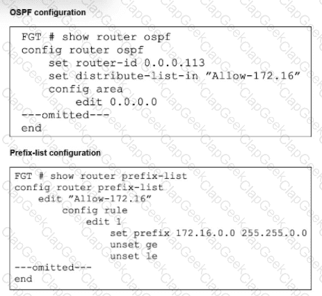 An OSPF peer is advertising route 172.16.52.0/24. The local FortiGate is configured with an inbound distribution list that allows the 172.16.0.0/16 network to be injected into its routing table. However, the 1 ' 2.16.52.0/24 subnet cannot be seen in the FIB.