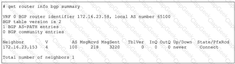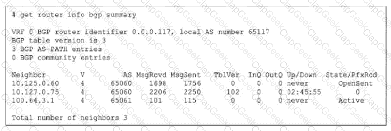 Refer to the exhibit, which shows the output of the command get router info bgp neighbors 100.64.2.254 advertised-routes.